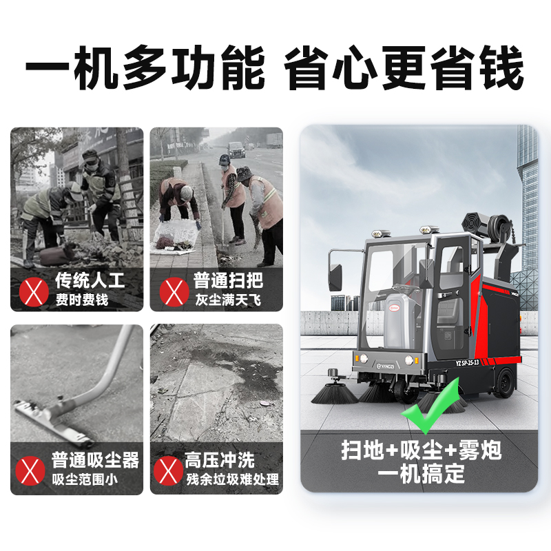 扬子扫地机YZ-SP25-13雾炮款 全封闭式驾驶 物业户外环卫室外大型道路清扫车