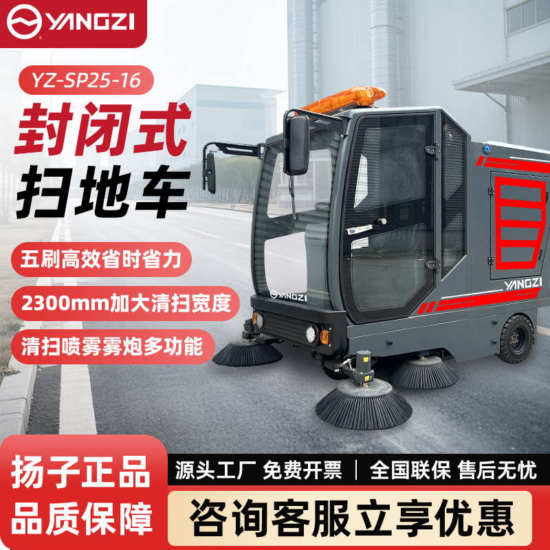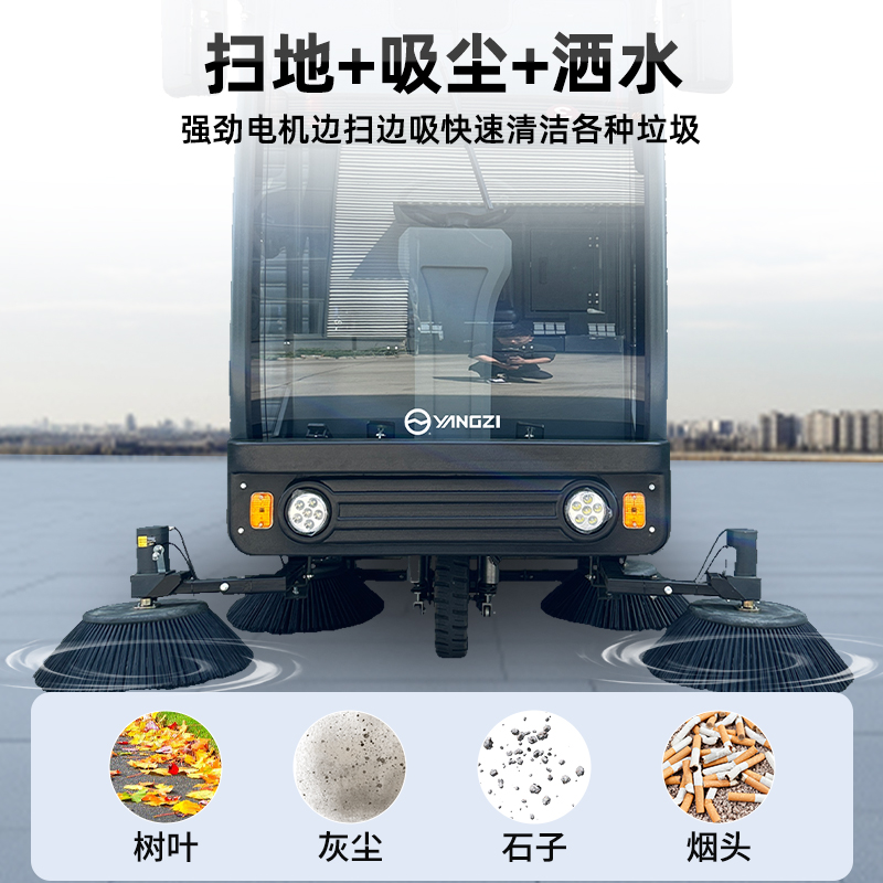 自营扬子扫地机YZ-SP25-16 全封闭式驾驶 工厂车间园区道路树叶扫路车